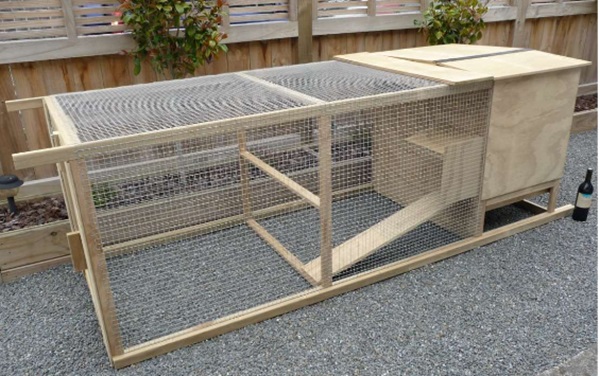 - Coop includes indoor enclosure adjoining outdoor run ideal for self-containing chickens in residential areas